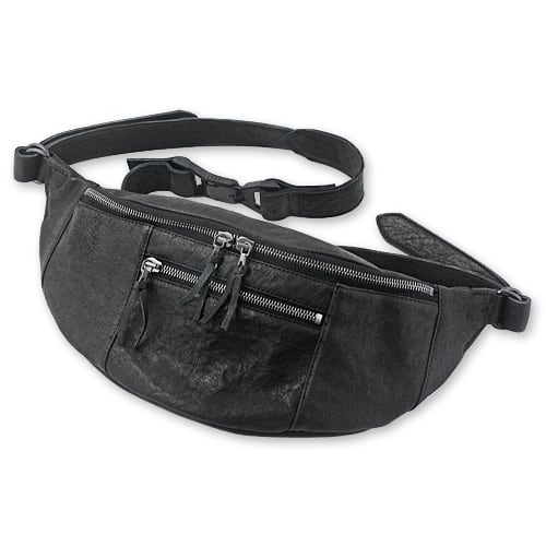 センターバックルを起用したことにより、ボトムスのベルトループに通してウエストバッグとしての着用も可能です。