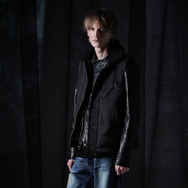 ワッシャーをかける事により、初めからしなやかでヴィンテージの様な風合いで、経糸のみ硫化染めの為、着込むほどに経年変化し味や奥行きが出て来るのが特徴です。