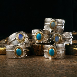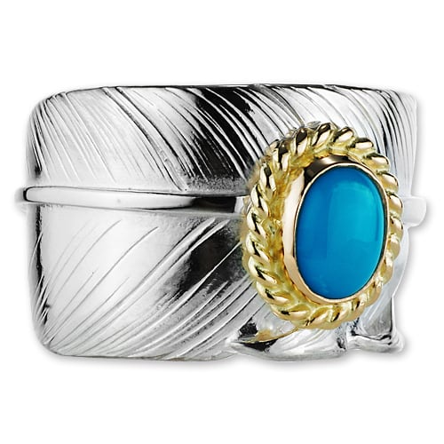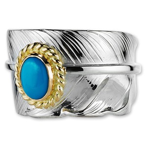 【鷲見太郎 Ring リング】Lフェザーリング01 w/6×8ターコイズK18YGカップ【送料無料】