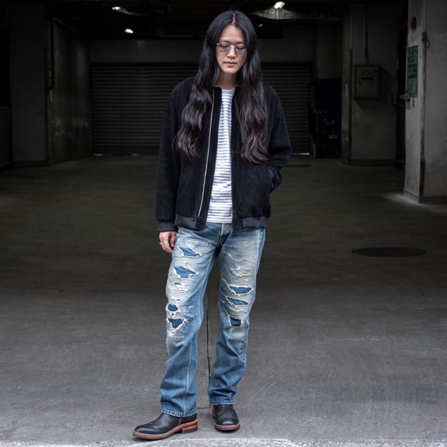ダメージとリペアをひたすら繰り返し、まるで100年穿いたかのような経年変化を製品加工で表現。