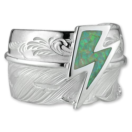 【鷲見太郎 Ring リング】Lアラベスクフライトフェザー01 w/ビッグサンダーオパール【送料無料】