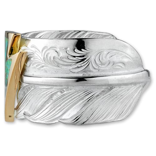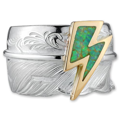 【鷲見太郎 Ring リング】Lアラベスクフライトフェザー01 w/K18ビッグサンダーオパール【送料無料】