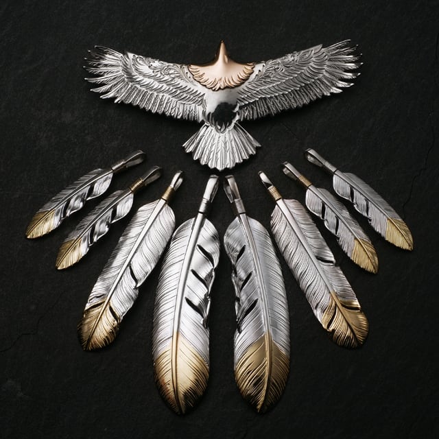 【鷲見太郎 Pendant ペンダント】LフェザーK18イエローゴールドトップペンダント/銀巻02【送料無料】