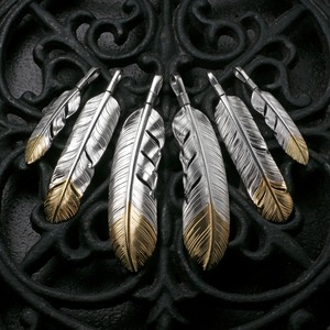 LフェザーK18イエローゴールドトップペンダント/銀巻02