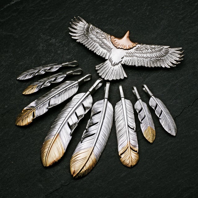 【鷲見太郎 Pendant ペンダント】MフェザーK18イエローゴールドトップペンダント/銀巻02【送料無料】