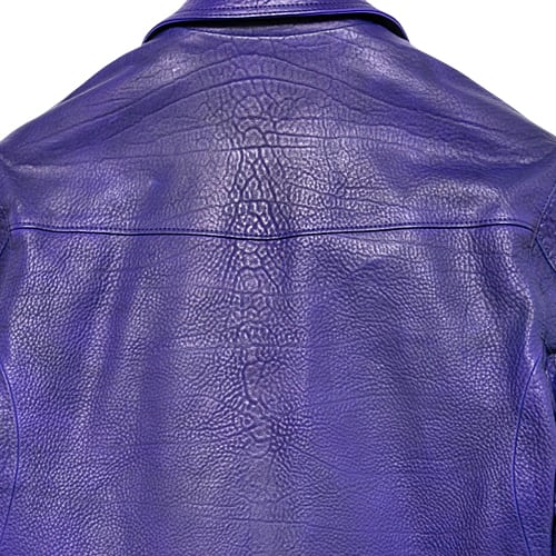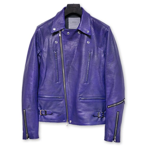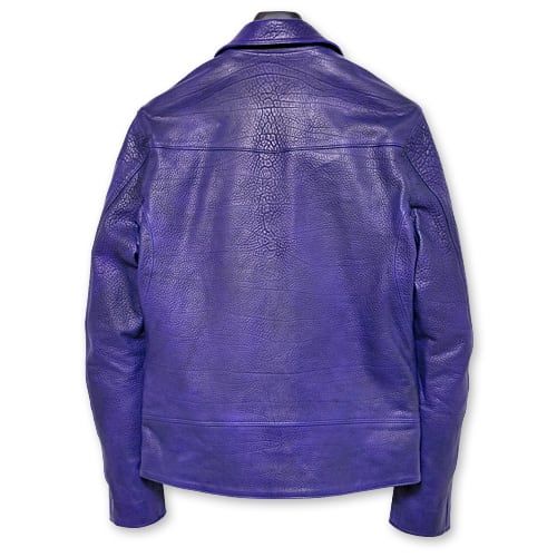革の状態でパープルに染め上げ、製品にしてから、ネイビーでバーニングダイを施すことで、 重みを帯びた青紫へと仕上げた「CATHEDRAL(カテドラル)」