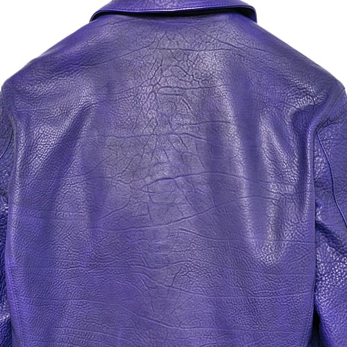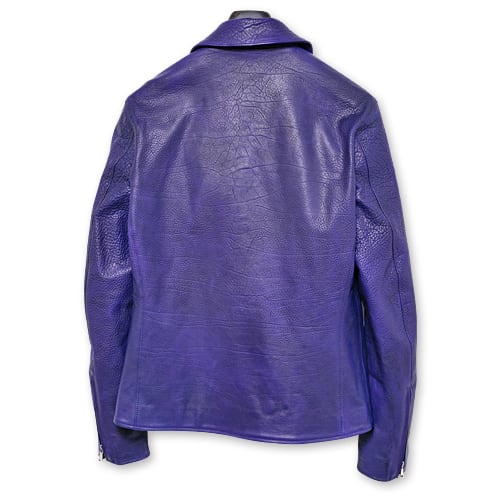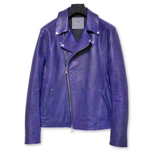 革の状態でパープルに染め上げ、製品にしてから、ネイビーでバーニングダイを施すことで、 重みを帯びた青紫へと仕上げた「CATHEDRAL(カテドラル)」