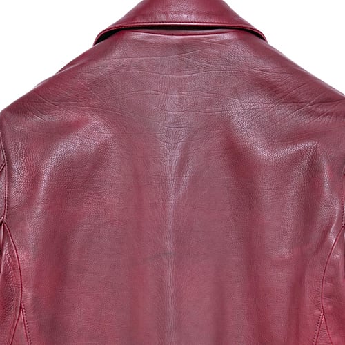 こちらのアイテムはカーフ自体の背中心が、ライダースの背中心に来るよう裁断し縫製しています。