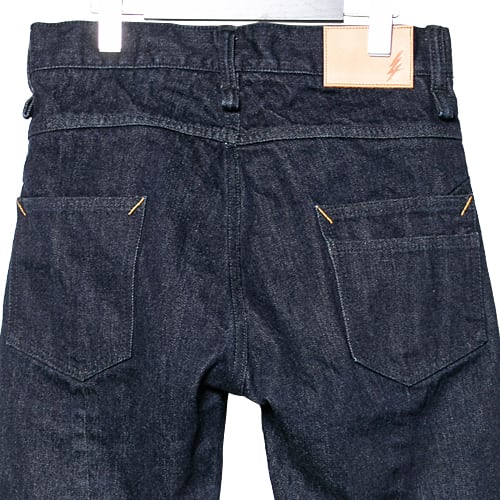 ヴィンテージの様な色落ちを表現する為に、通常14ozのデニムは6番手の糸を使う所、タテ糸に端番手(はばんて)と呼ばれる小数点以下の番手、5.7番手のやや太い特注の糸を使い紡績しています。