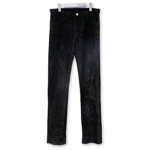 レザーパンツに使用するため、膝が出にくいよう厚みは1.4mmとやや厚めに設定しています。