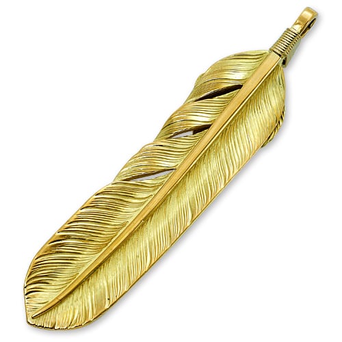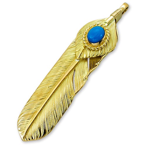 L K18イエローゴールドフライトフェザー&K18ハートフェザーペンダント01 w/ターコイズK18カップ/オーバル6×8