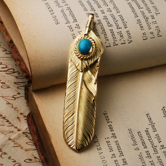 【鷲見太郎 Pendant ペンダント】L K18イエローゴールドフライトフェザー&K18ハートフェザーペンダント01 w/ターコイズK18カップ/オーバル6×8【送料無料】