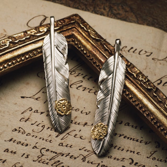 【鷲見太郎 Pendant ペンダント】Mフライトフェザーペンダント01 w/S K18フラワーメタルトップ【送料無料】