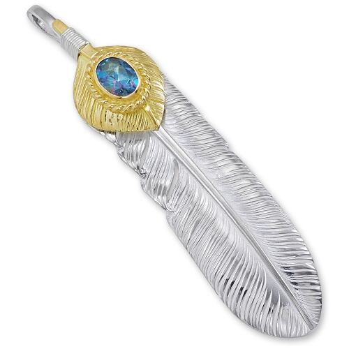 【鷲見太郎 Pendant ペンダント】オールドLフェザー&K18YGハートフェザーペンダント02 w/レインボートパーズK18カップ/オーバル6×8【送料無料】